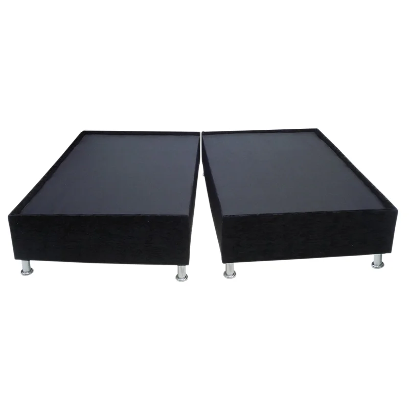 Base cama dividida en 2 módulos del mismo tamaño, elaborada en madera de pino canadiense para mayor resistencia y durabilidad. Tapizada en tela tipo antirasguño de alta calidad. Cuenta con 8 patas en acero inoxidable (4 por módulo) que brindan excelente estabilidad. Incluye pestaña de encaje para evitar que el colchón se deslice.